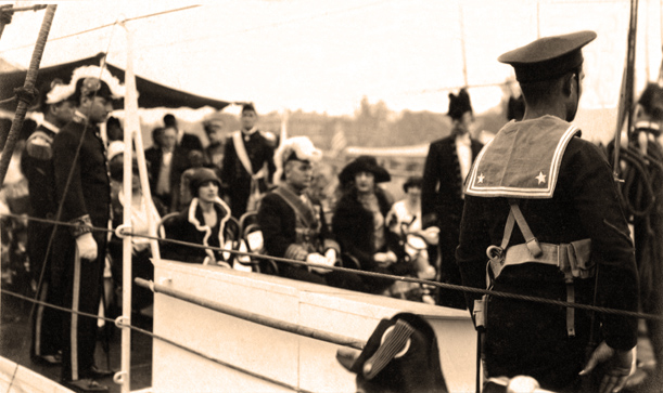 - LA CERIMONIA DELLA CONSEGNA DELLA BANDIERA DI COMBATTIMENTO ALLA R. N. SEBASTIANO CABOTO AVVENNE TIENTSIN IL 2 MAGGIO 1926. LA MADRINA DELLA CERIMONIA FU DONNA ELISABETTA CERRUTI, MOGLIE DEL REGIO MINISTRO PLENIPOTENZIARIO A PECHINO VITTORIO CERRUTI.