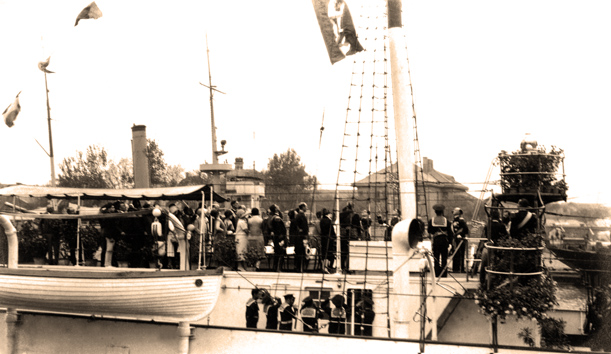 - LA CERIMONIA DELLA CONSEGNA DELLA BANDIERA DI COMBATTIMENTO ALLA R. N. SEBASTIANO CABOTO AVVENNE TIENTSIN IL 2 MAGGIO 1926. LA MADRINA DELLA CERIMONIA FU DONNA ELISABETTA CERRUTI, MOGLIE DEL REGIO MINISTRO PLENIPOTENZIARIO A PECHINO VITTORIO CERRUTI.