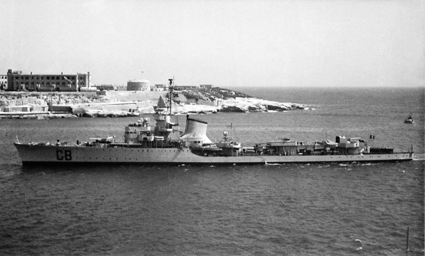 AL TERMINE DEL CONFLITTO MONDIALE, PROFONDAMENTE RIAMMODERNATO, RIMASE IN SERVIZIO NELLA M.M.I. SIA COME UNITÀ DI SQUADRA SIA, SUCCESSIVAMENTE, COME NAVE ESPERIENZA. RADIATO NEL 1965 RIMASE PER TRE ANNI A DISPOSIZIONE DEGLI ARDITI INCURSORI AL VARIGNANO ALLA SPEZIA. AVVIATO ALLA DEMOLIZIONE IN UN CANTIERE DELL’ADRIATICO, DURANTE LA FASE DI RIMORCHIO, AFFONDÒ SU UN BASSO FONDALE, PER FALLE ALLO SCAFO, FUORI LA DIGA DI QUELLA CITTÀ. RECUPERATO FU SMANTELLATO ALLA SPEZIA.
