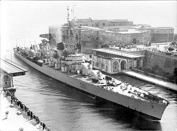 IMMATRICOLATO NELLA M.M.I., FU TRASFORMATO IN INCROCIATORE LANCIAMISSILI TRA IL 1957 E IL 1961. RADIATO NEL 1971.