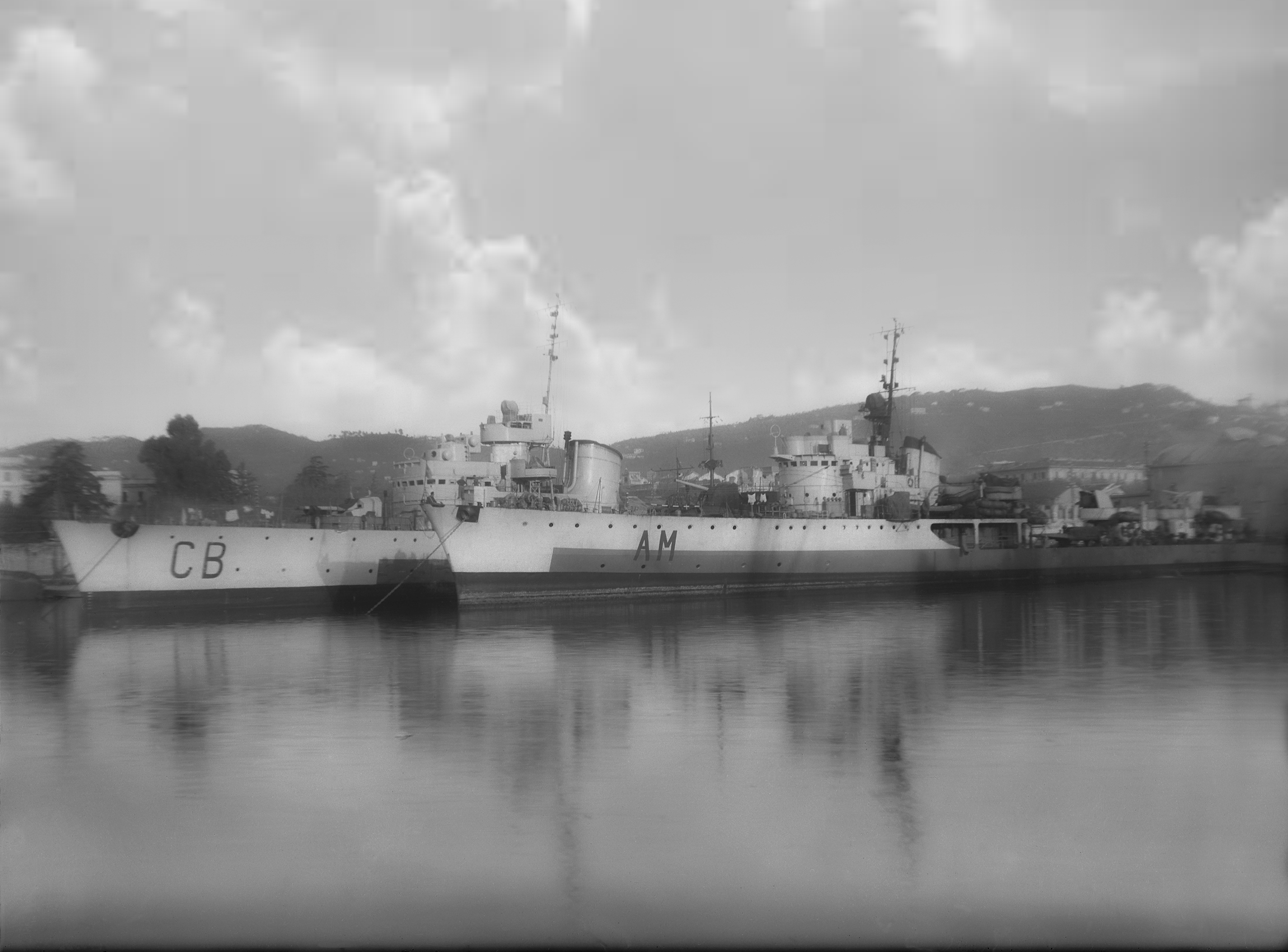 • LA SECONDA ENTRÒ A FAR PARTE DELLA MMI, DOVE OPERÒ SINO AL GENNAIO 1965. NEGLI ANNI 1953-55 FU SOTTOPOSTA AD IMPORTANTI LAVORI DI TRASFORMAZIONE NELL’ARSENALE DI TARANTO OPERANDO CON IL DISTINTIVO OTTICO D 551 CHE CAMBIÒ, NEL 1960, IN A 5314 QUANDO FU ADIBITA A NAVE ESPERIENZA. FU RADIATA NEL GENNAIO 1965.