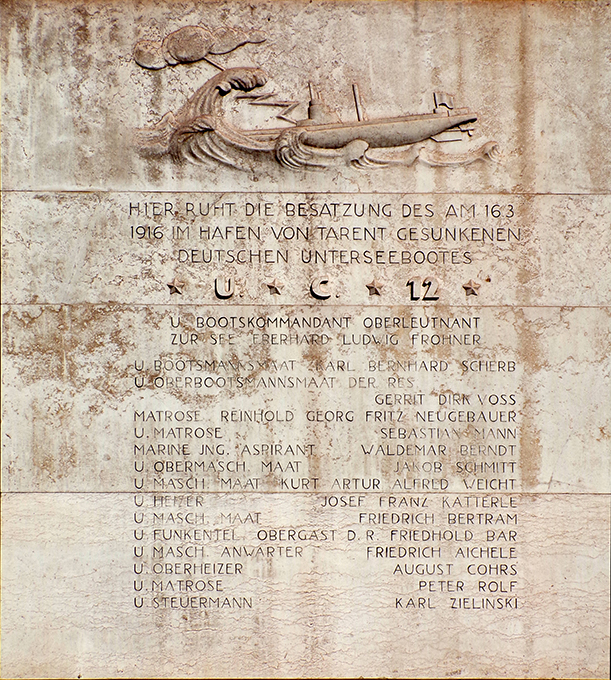 LAPIDE SITA NEL CIMITERO COMUNALE DI TARANTO A RICORDO DELL'EQUIPAGGIO
