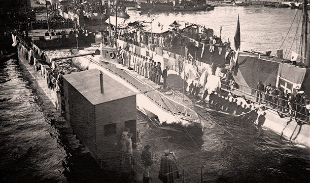 - AFFONDATO IL 16 MARZO 1916 NEL GOLFO DI TARANTO NEL CORSO DI UNA OPERAZIONE DI MINAMENTO. RECUPERATO FU POSTO AI LAVORI NEL ARSENALE DI TARANTO E INCORPORATO NELLA REGIA MARINA ITALIANA IL 13 APRILE 1917 CON IL NOME DI X 1.