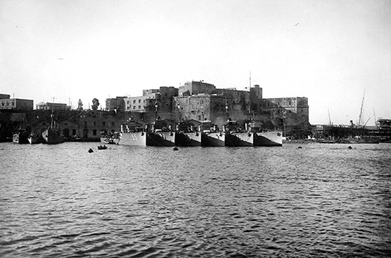 NELLA FOTO, RIPRESA IN BANCHINA SOTTO IL CASTELLO DI TERRA, MANCA L’HMAS TORRENS (D67) E AL SUO POSTO, ALL’ESTREMA DESTRA, È RIPRESO IL CACCIATORPEDINIERE INGLESE HMS PHOENIX (H 94).