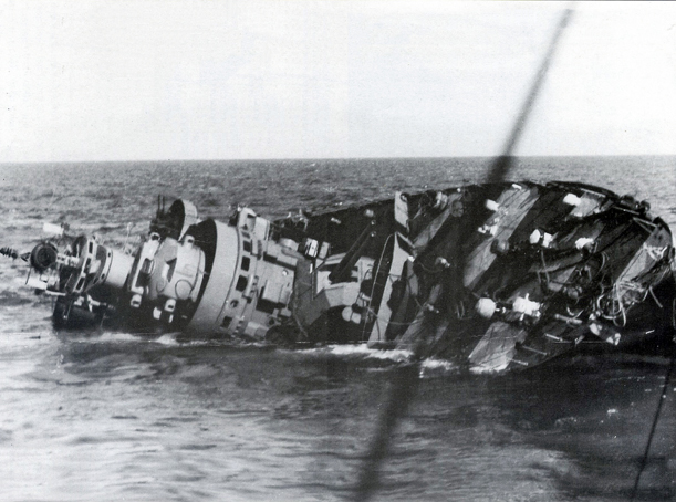 from an original in the E. Bagnasco collection. The destroyer Libeccio was lost on the morning of 9 November 1941, torpedoed and sunk by HMS Upholder (Cdr. Wanklyn) in the southern Ionian Sea, east of Sicily. The Libeccio was one of the escort ships of the "Duisburg" convoy, attacked and destroyed by Malta's "Force K in the night between 8 and 9 November; after having been torpedoed, Libeccio was taken in tow by the destroyer Euro, but leaks and hull damage caused her sinking - as shown in the photograph - at 11.18, in position 36°50'N - 18°10'W.
