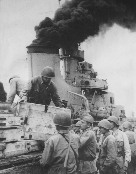 Note - Notes: Novorossijsk, primavera 1942. Imbarco di munizioni e rifornimenti a bordo del Tashkent, prima della partenza per una missione di rifornimento alla piazzaforte di Sebastopoli, assediata dalle truppe germaniche. (g.c. E. Zelikov)