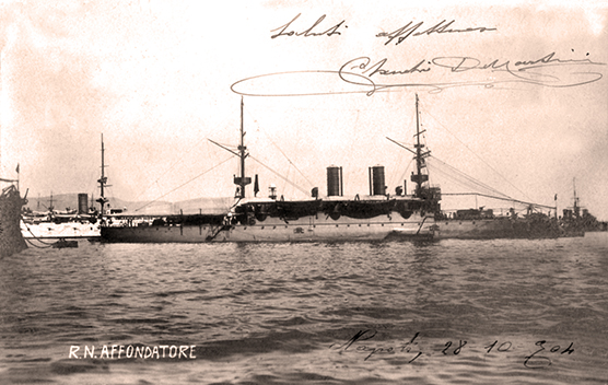 AL TERMINE DELLA SUA VITA OPERATIVA FU IMPIEGATA COME NAVE SCUOLA SILURISTI. VIAGGIATA IL 28 OTTOBRE 1904