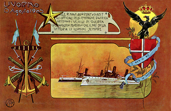 Note - Notes: CARTOLINA RICORDO CONSEGNA DELLA BANDIERA DI COMBATTIMENTO A LIVORNO IL 15 AGOSTO 1905