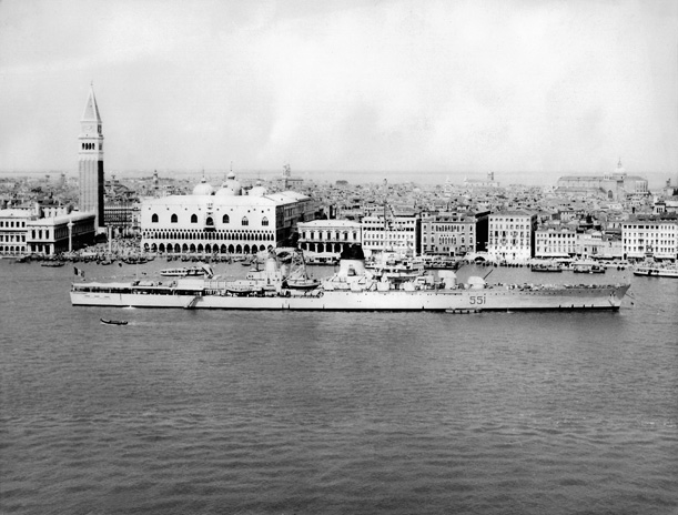 IMMATRICOLATO NELLA M.M.I., FU TRASFORMATO IN INCROCIATORE LANCIAMISSILI TRA IL 1957 E IL 1961. RADIATO NEL 1971.
