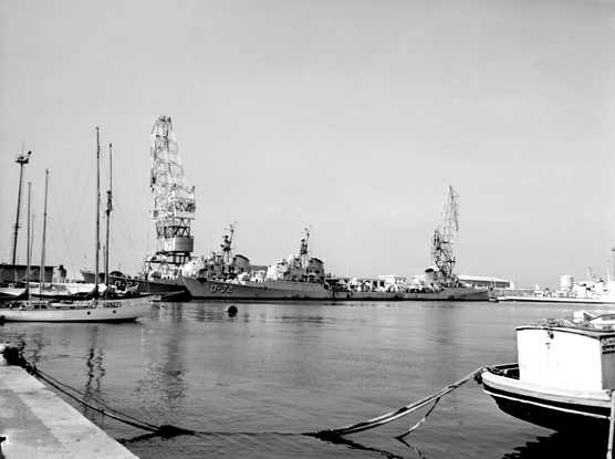 NOTE: LAVORI DI AMMODERNAMENTO.AFFIANCATO SI NOTA LA PRUA DELL'ALMIRANTE BRION (D-23) E A POPPAVIA L'ALMIRANTE GARCIA (D-33)