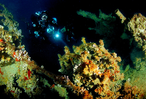 Note - Notes:SUB ILLUMINA LA ZONA IN CUI SONO CONSERVATI IL TRALICCIO CON IL TELEMETRO, LA TIMONERIA DI POPPA E LA MITRAGLIERA ANTI AEREA.