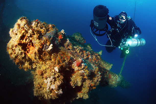 Note - Notes: POPPA- CANNONE DA 102/45 MM E UN SUBACQUEO DOTATO DI DPV E BOMBOLE PER LA DECOMPRESSIONE