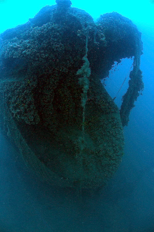 POPPA DEL RELITTO VISTO DAL FONDALE SABBIOSO .