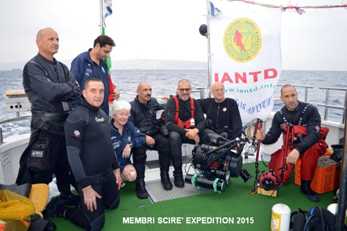 Alla spedizione su questo relitto di grande importanza storica hanno partecipato otto istruttori e subacquei IANTD, essi sono: Fabio Ruberti, capo spedizione; Cesare Balzi, vice-capospedizione e operatore subacqueo addetto alle misurazioni; Carla Binelli, segreteria; Edoardo Pavia, cine-operatore subacqueo; Alberto Dabalà, fotografo subacqueo; Alessandro Brandetti, operatore subacqueo addetto alle misurazioni; Gianluigi Da Campo, medico della spedizione e operatore subacqueo; Mark Feder, responsabile logistica e operatore subacqueo.