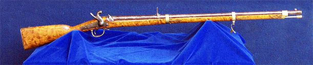QUESTO LUNGO FUCILE DI FANTERIA, NUOVO D’ARSENALE, RIGATO, A PERCUSSIONE, DOTATO DI VITONE ORDINARIO E DI CALIBRO INSOLITAMENTE PICCOLO, CON UNA CASSA DI SUPERBO NOCE CHIARO TIGRATO, RAPPRESENTA L’ULTIMA EVOLUZIONE DELLA SPECIE DELLE ARMI AD AVANCARICA.