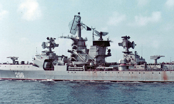 Note - Notes: VERSO PRORA E VERSO POPPA, SI NOTANO LE RAMPE PER MISSILI ANTIAEREI SA-N-3 CON I RELATIVI GRUPPI DI RADAR DI GUIDA “HEAD LIGHT”, IL GRANDE RADAR DI SCOPERTA AEREA “TOP SAIL” ALLA SOMMITÀ DEL TORRIONE E L’IMPIANTO LANCIASILURI QUINTUPLO DA 533 MM DI SINISTRA.